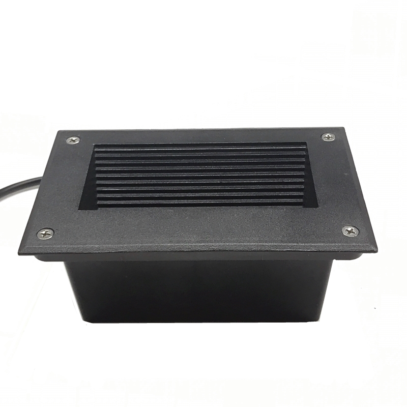 LED臺(tái)階燈型號(hào):LDR-TJD003-5D LED數(shù)量:5珠 工作電壓:AC220V 功 率:5W 顏 色:紅/綠/藍(lán)/白/金黃/七彩 燈具壽命:>10000H(小時(shí)) 燈體材質(zhì):鋁材 燈體尺寸:165*105*65mm 防護(hù)等級(jí):IP65
